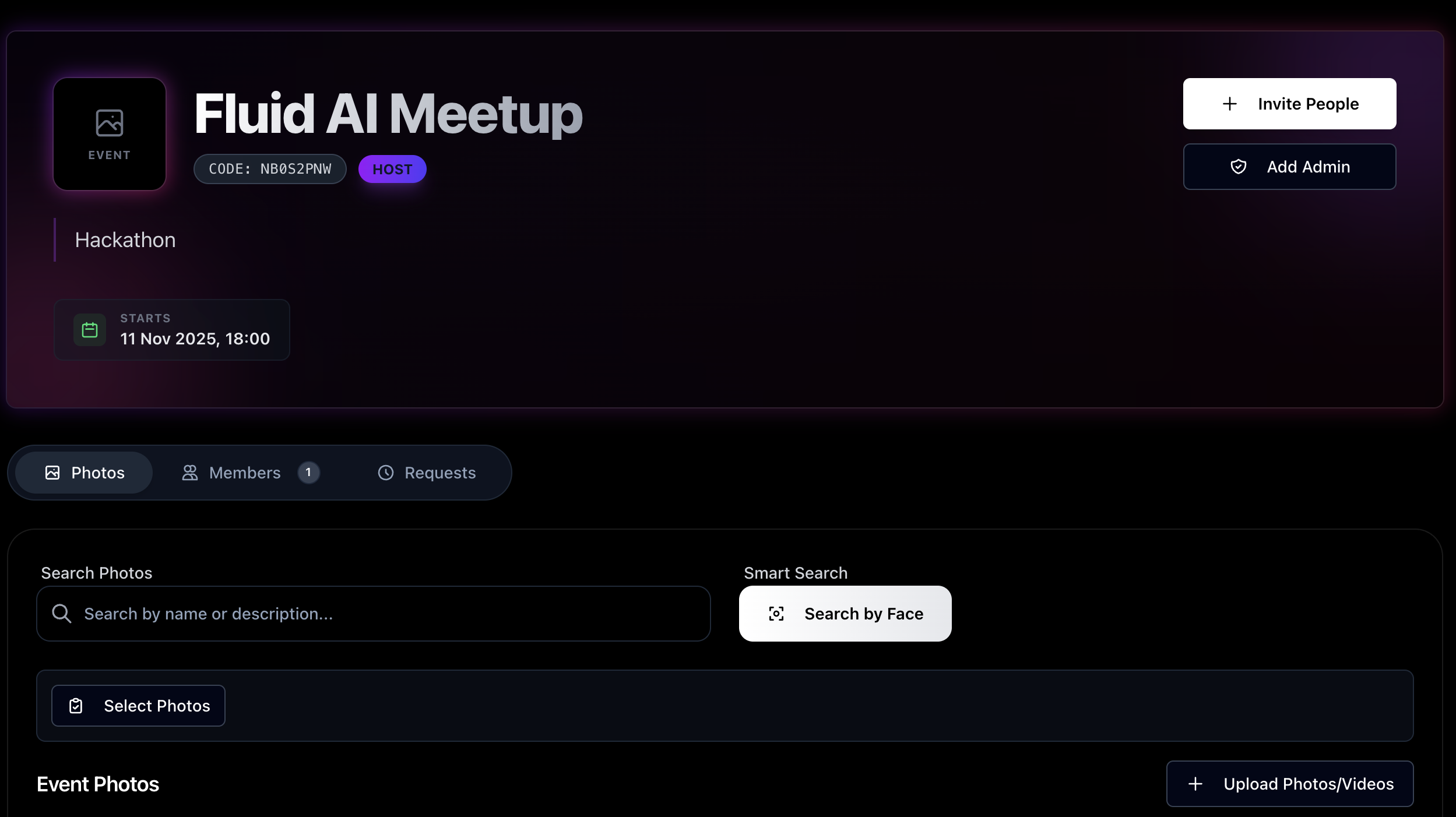 He built a platform for events where attendees can upload photos and videos, view everything in one place, and even find themselves instantly using face search.